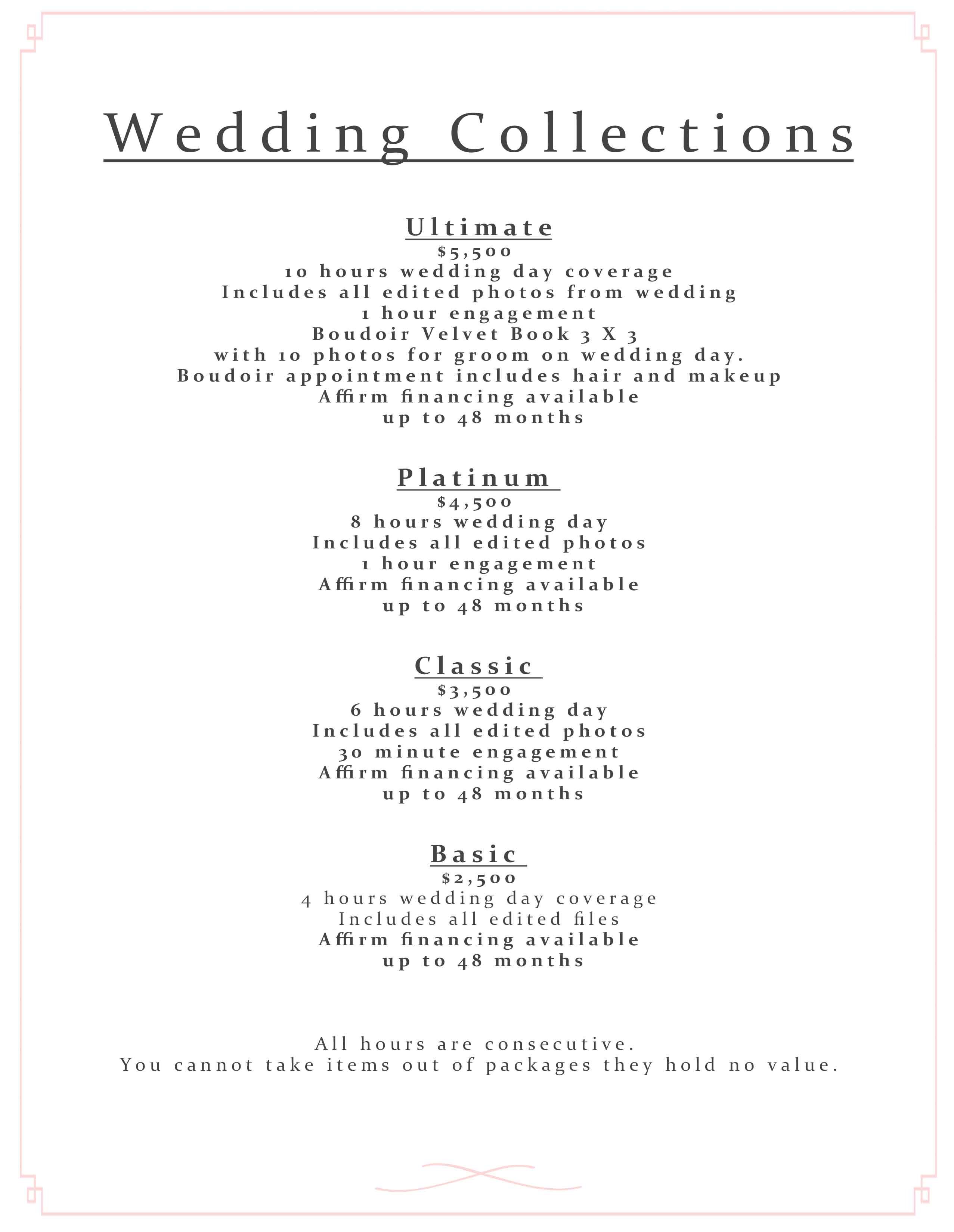 For over 16 years, I have had the honor of capturing love stories through my lens- preserving the laughter, the tears, and the fleeting in-between moments that make your wedding day uniquely yours. FINANCING AVAILABLE THROUGH AFFIRM!